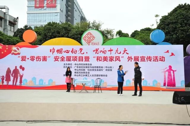 为贯彻落实党的十九大会精神,启动实施“七五”普法规划,广泛宣传《中华人民共和国反家庭暴力法》,提高全社会的反家暴意识,宣传维护平等、和睦、文明的家庭关系,引导广大群众共建共享平安中山。由中山市妇联主办的“爱·零伤害”安全屋项目暨“和美家风”外展宣传活动于2017年12月17日上午在南区良都全民公益园顺利举行。