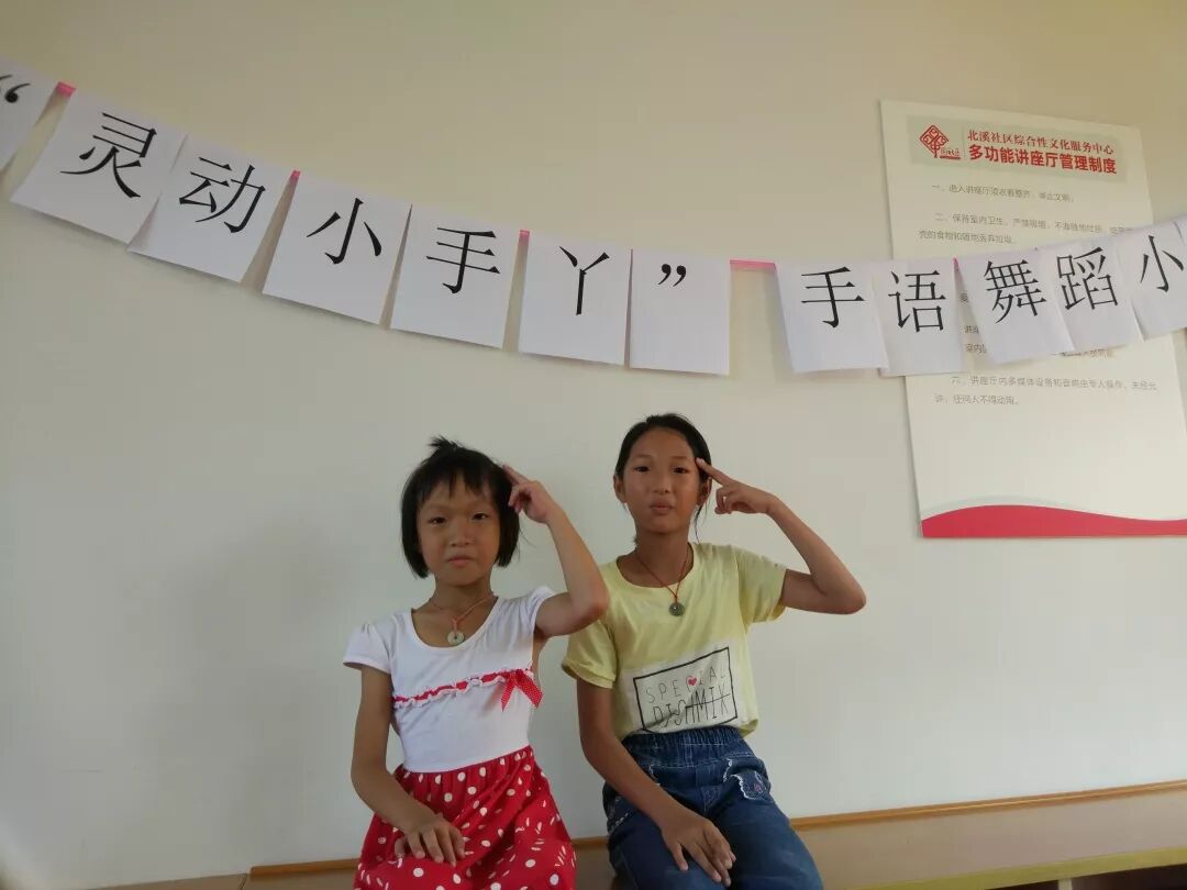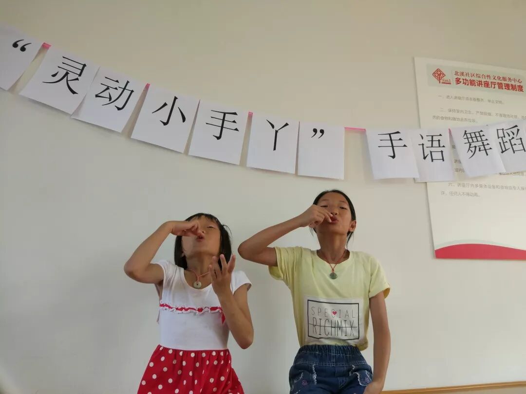 为了丰富社区青少年们的暑假生活,让青少年能体验到一些特殊人群的语言,学会理解与尊重这些人群,以及在上一期活动的基础上继续巩固青少年学习手语的能力,更加深入的学习手语、体会手语、喜欢手语,志远社工于2018年7月27日下午14:30——15:30在北溪社区综合性文化服务中心二楼会议室开展了“灵动小手丫”——手语舞蹈小组第二期活动。