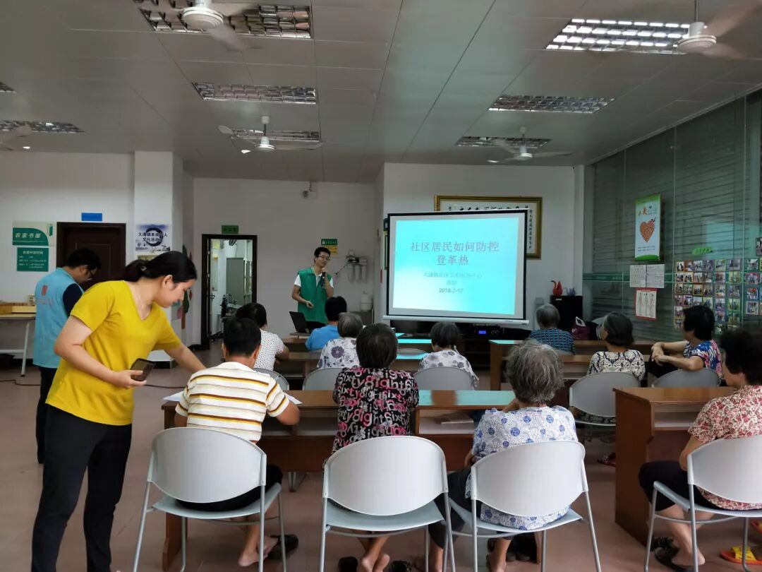 本活动由大涌镇社区卫生服务中心苏彰主任主讲,分别介绍了为:什么是登革热、登革热的危害和治疗要点、如何防治登革热等知识,在蚊虫滋生的暑热夏季为社区居民带来及时雨,苏主任为到场的老人家把整个讲座的知识提炼成这几句话:防蚊、灭蚊、清积水!