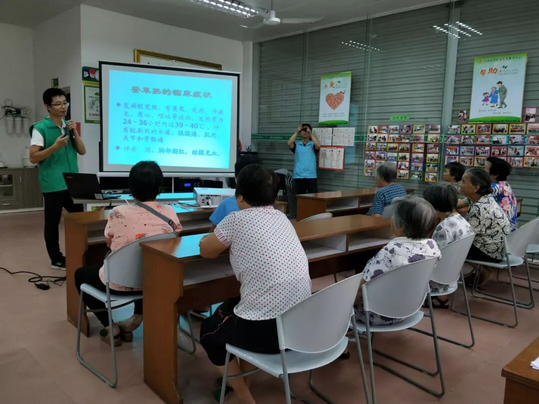7月17日,大涌镇居家养老服务中心联动大涌镇社区卫生服务中心开展“社区居民如何防控登革热知识讲座”。