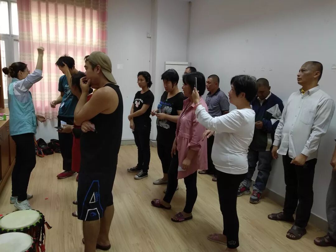 活动开始前,社工先给学员们进行“比比谁更长”的热身游戏,社工介绍完游戏的规则后,就把学员们分成了3组,进行pk。学员们纷纷大出奇招,有的组员把身上的衣服脱了,放在桌子上,有的组员把项链摘了也放在桌子上,还有的学员把鞋带给取了,能放的东西基本都在桌子上出现。