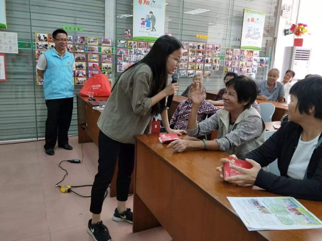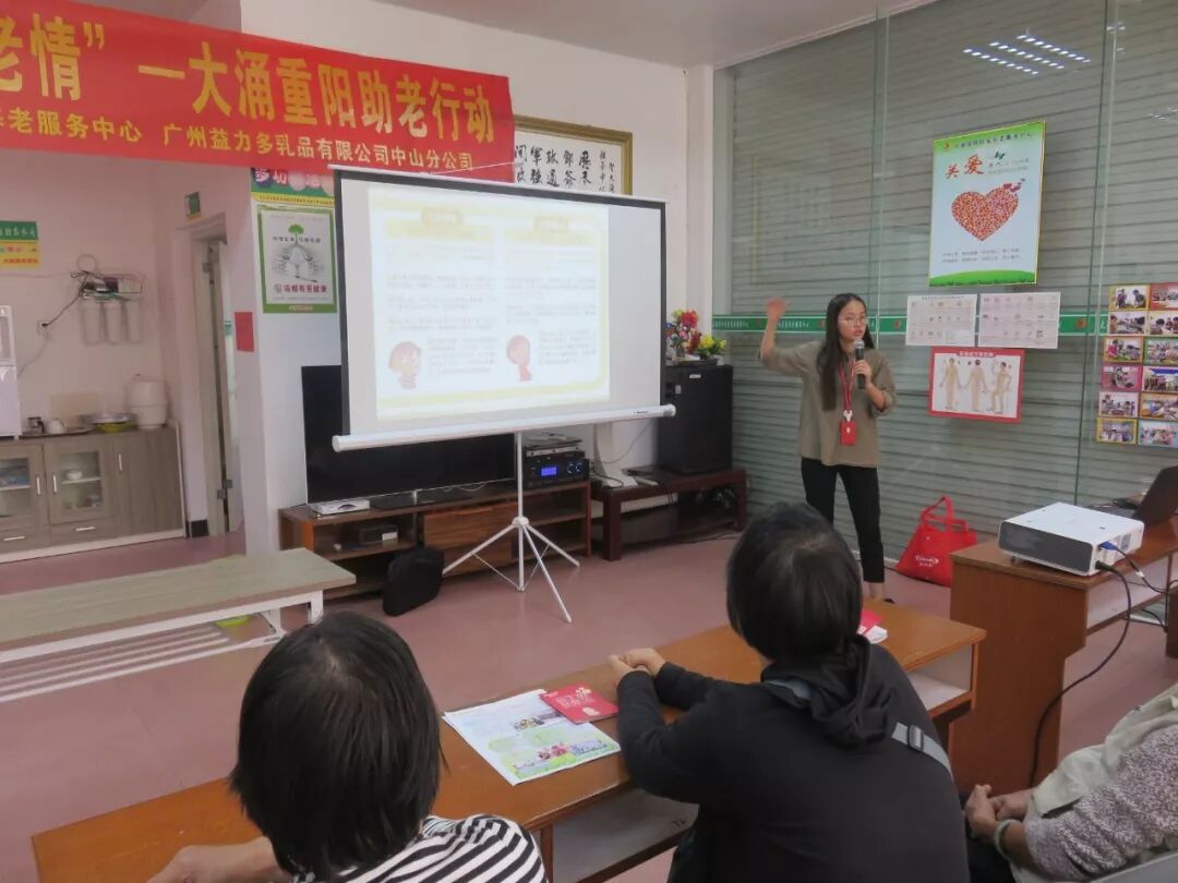 10月31日,由大涌镇社会事务局、志远·大涌镇居家养老服务中心和广州益力多乳品有限公司为岚田社区的长者居民送来最暖心的祝福和福利。 认真听讲 讲座开始前,首先由志远·大涌居家养老服务中心的社工为老人们介绍了益力多有限公司的营养师吴小姐,紧跟着营养师用生动活泼的语言和多彩的图片为大家分享介绍老年人肠道保健及日常调理的知识,老人家专注聆听营养师的介绍,对主持人提出的问题积极回应,现场气氛热烈。在中心开展老年肠道健康讲座还是第一次! 踊跃参与互动 倾情解说 最后广州益力多乳品有限公司也为到场的老人每人送上一排益力多饮品,活动吸引32位社区长者参加,每一位参加活动的老人家都对活动表示满意,并盼望中心多开展同类的活动。 有奖耶 活动预告:11月中旬,超大型的社区长者生日会约定您们啦! 志远·大涌镇居家养老服务中心 朱艳红撰文
