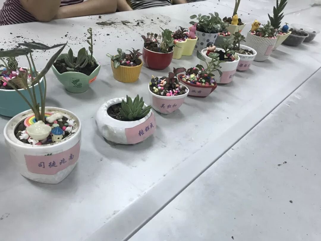 所有学员独立种植的盆栽,许多学员都很自豪地说:这是我自己种的盆栽,我要带回家养活它。并一齐贴上了自己名字。