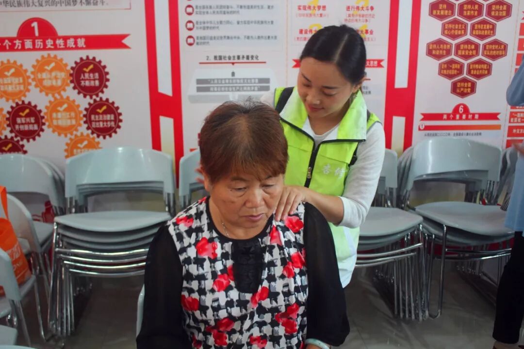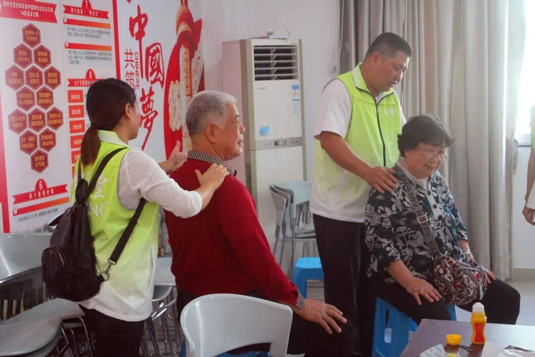 在讲座开始之前,志愿者为长者们提供中医养生咨询和颈肩腰腿痛医疗体验,让长者松松筋骨。讲座开始,邱医师为居民讲解在日常该如何摄入营养,要保持合理膳食和运动。