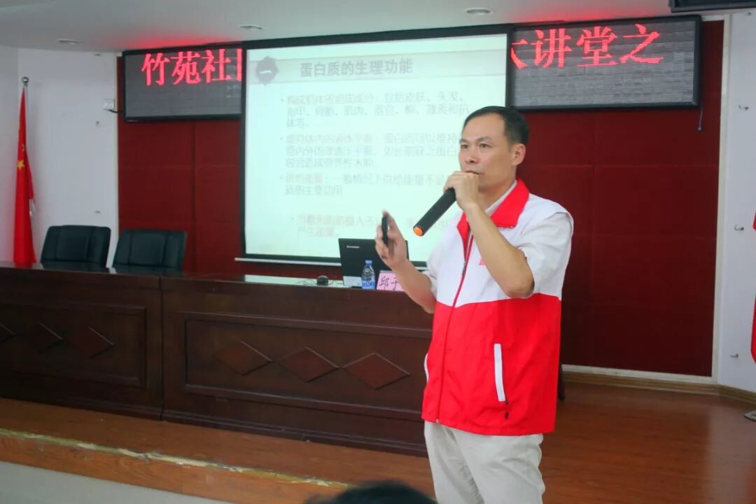社区邀请全科执业医师、健康管理师邱子为向居民讲解日常营养知识。