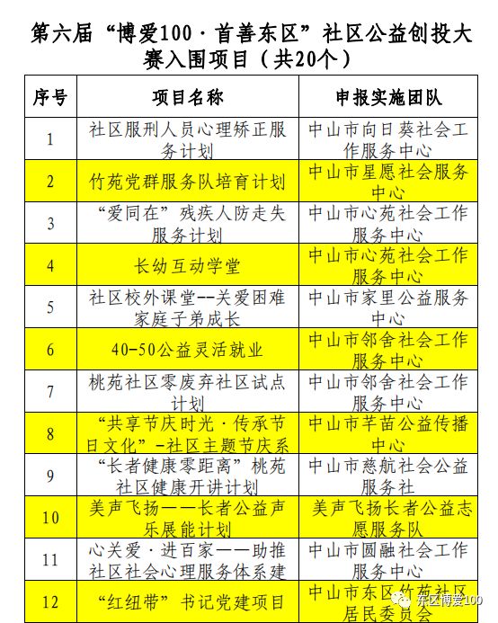 公益小伙伴们,期待已久的第六届“博爱100•首善东区”社区公益创投大赛评审结果终于出炉啦!
