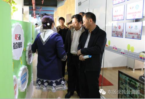 当他兴致昂扬的来到公益园的社会组织培育基地时,被园区的服务氛围及充满社会服务元素的办公场地和社会组织的产品展示区域所感动,停留了相当长的时间去体验公益园的云系统、平安扶,尤其是与公益达人邻舍负责人卡卡的对话,领导们都被为公益全身心的她们点赞,对公益园在地项目“衣物银行”的运营模式十分感兴趣,并希望省会也能够有类似的项目扎根本土。