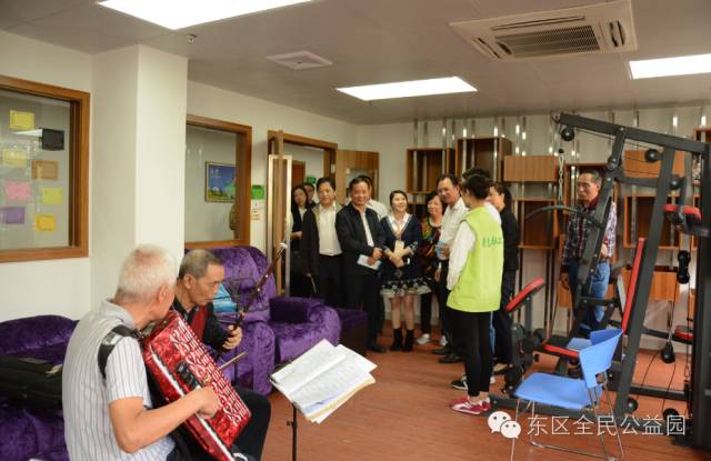 公益园统筹办负责人王少婷为饶美奕厅长一行进行了详细讲解。饶厅长参观东区全民公益园及东区居家养老服务中心后,对东区党工委拨款接近1000万元建立公益园区的为民工程点赞;他为东区居家养老服务中心的既能够满足社群需要又能够培育出10个长者社团点赞;他说“老有所为,老有所用”,长者能够在政府关心下自娱自乐并发挥余光余热的助人行动,在东区居家养老服务中心得到充分体现。